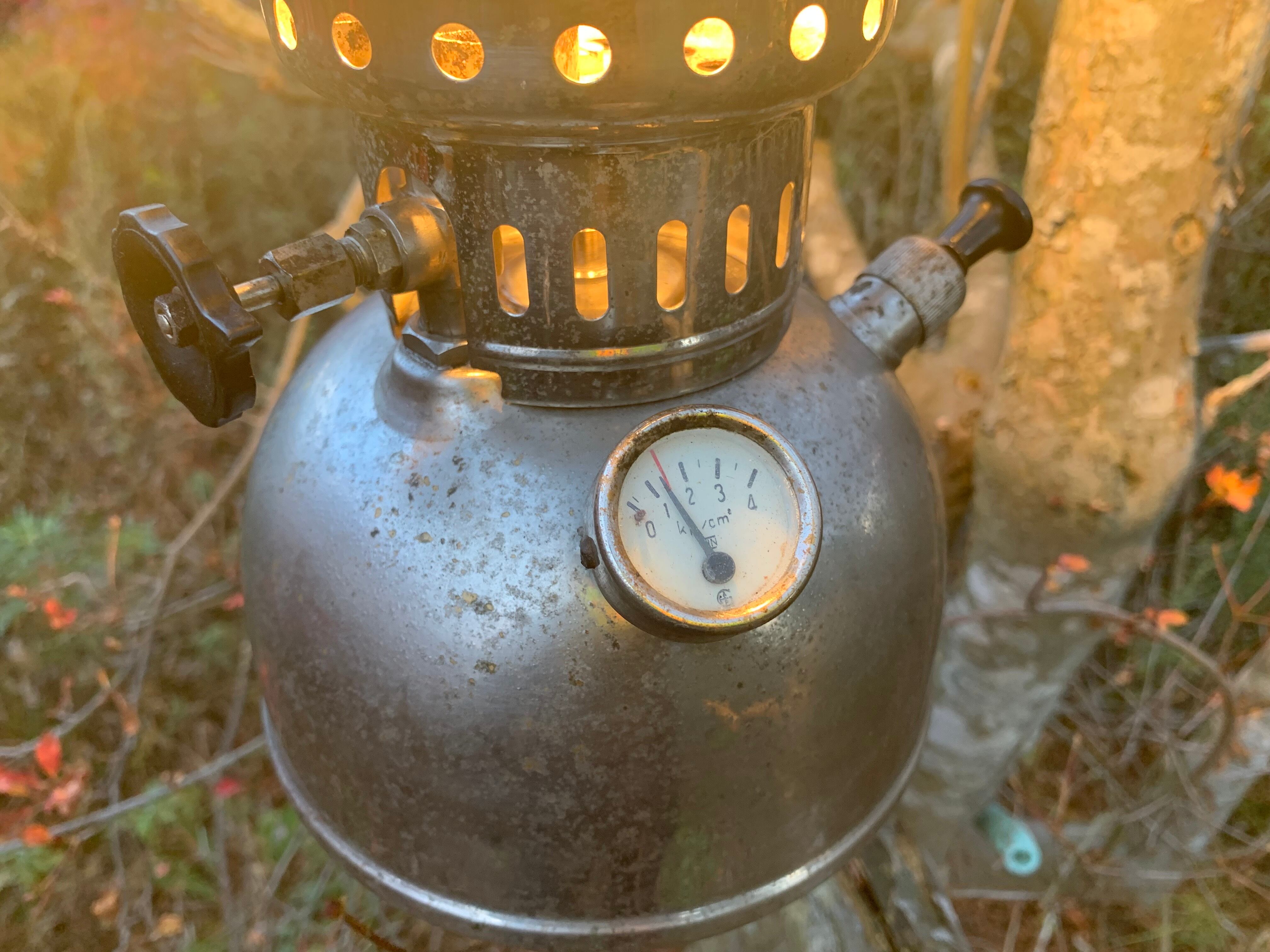 圧力計赤のメモリまでポンピング後に予熱皿にアルコールを入れ数分加熱したのちに点火させました。大変明るく綺麗に灯りました。