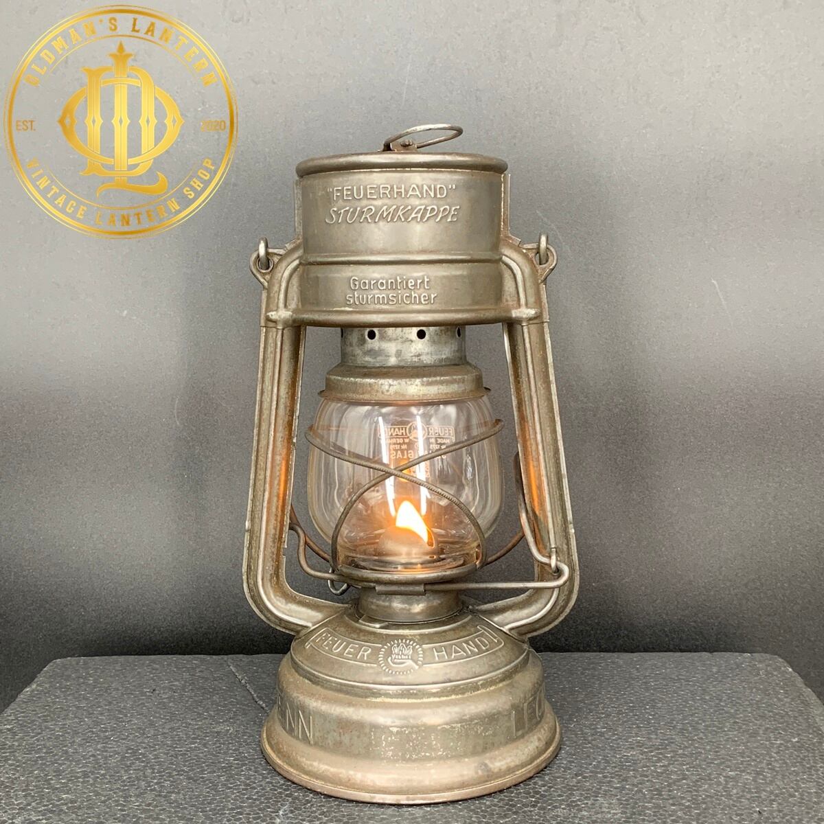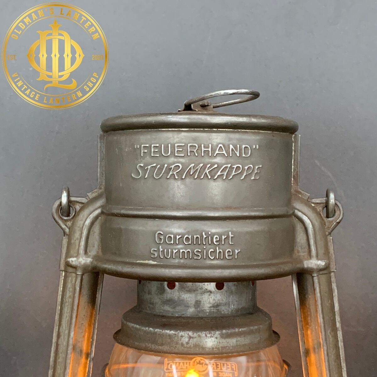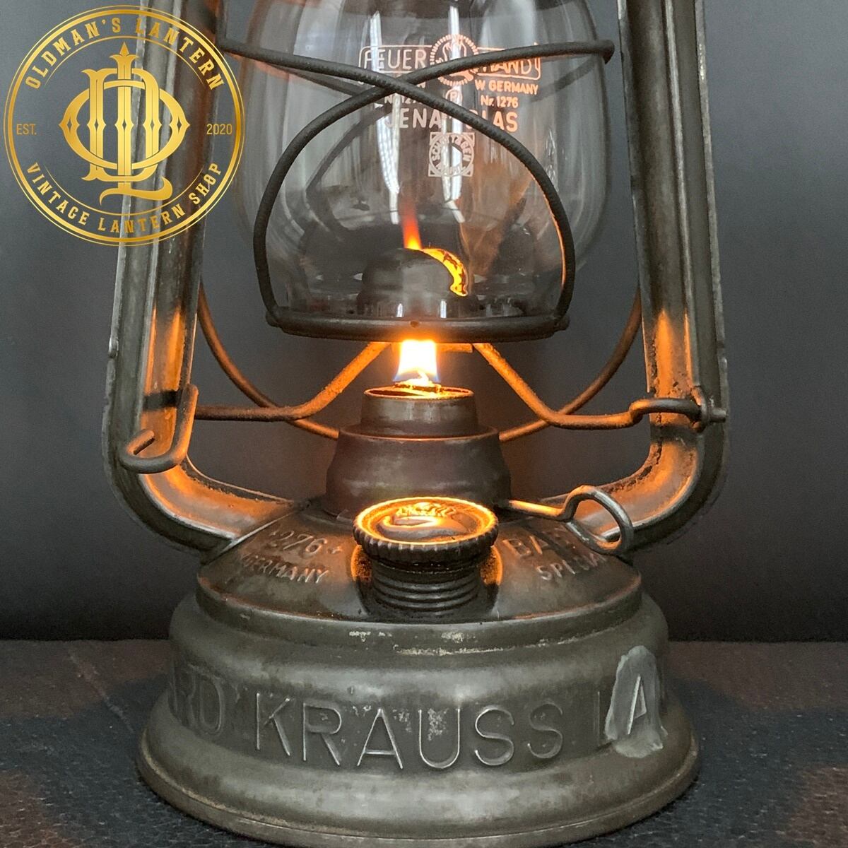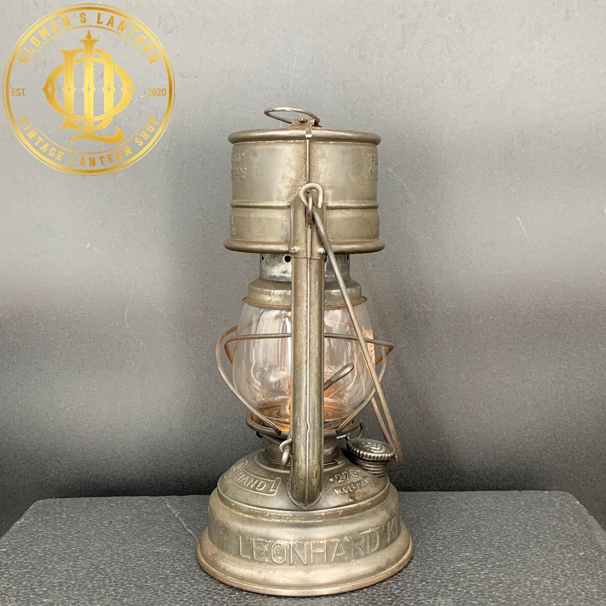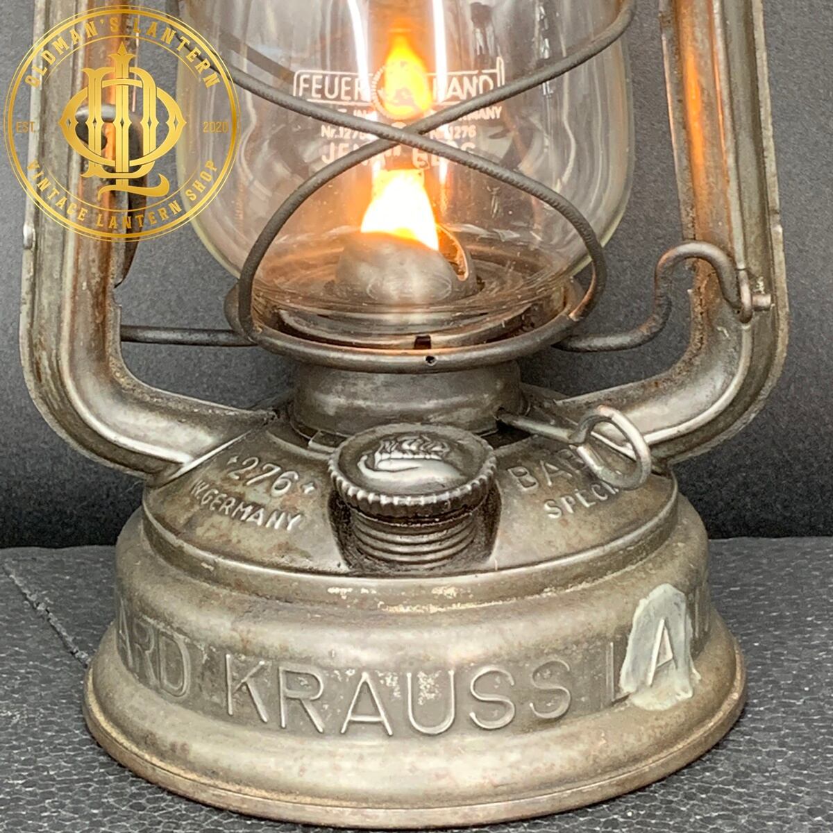 エンボスがあり、ドイツの都市LANGENZENN(ランゲンゼン)にあったKRAUSS鉄道舗装会社で使用されていた大変レアなランタンだと思われます。