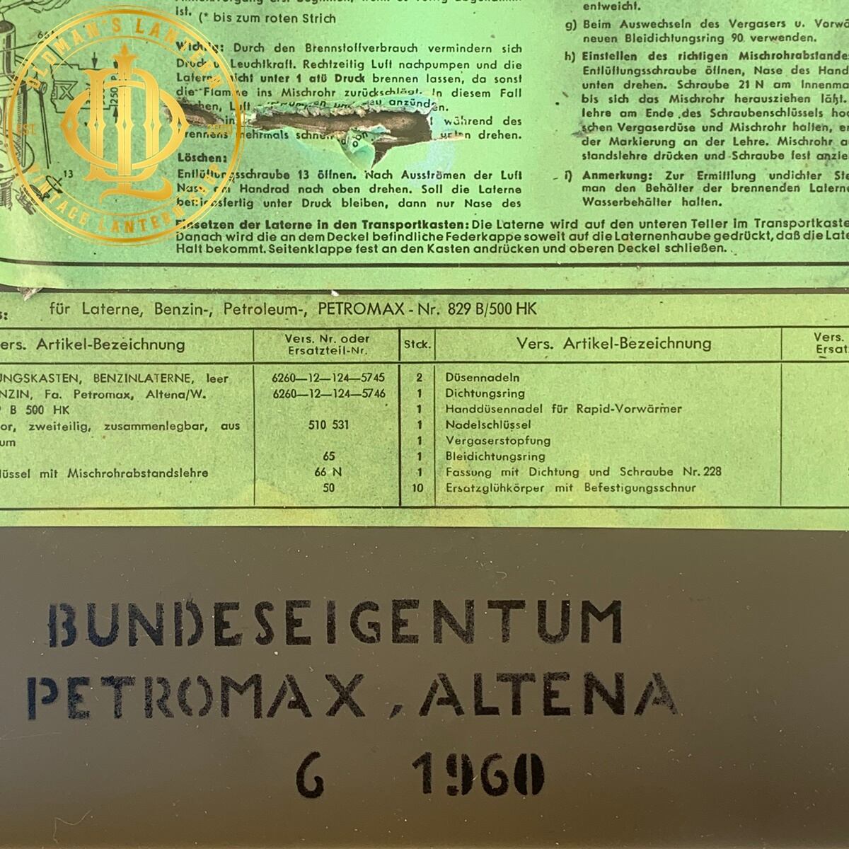 NOS 未使用品 整備済 PETROMAX 829 HK500 軍用 BOX 鍵付き アーミー